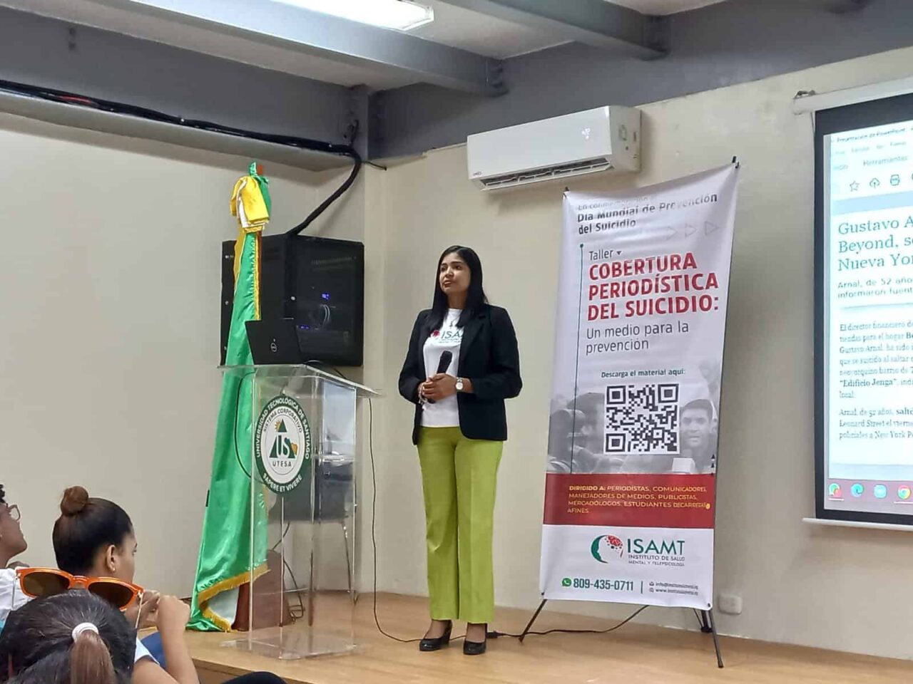 En el encuentro realizado en el auditorio de la Universidad Tecnológica de Santiago, la psicóloga explicó que silenciar un suicidio nunca ayudará a prevenir otro e instó a las personas que conocen las intenciones suicidas de alguien a comunicarlo lo antes posible para así ofrecerle ayuda de manera oportuna.